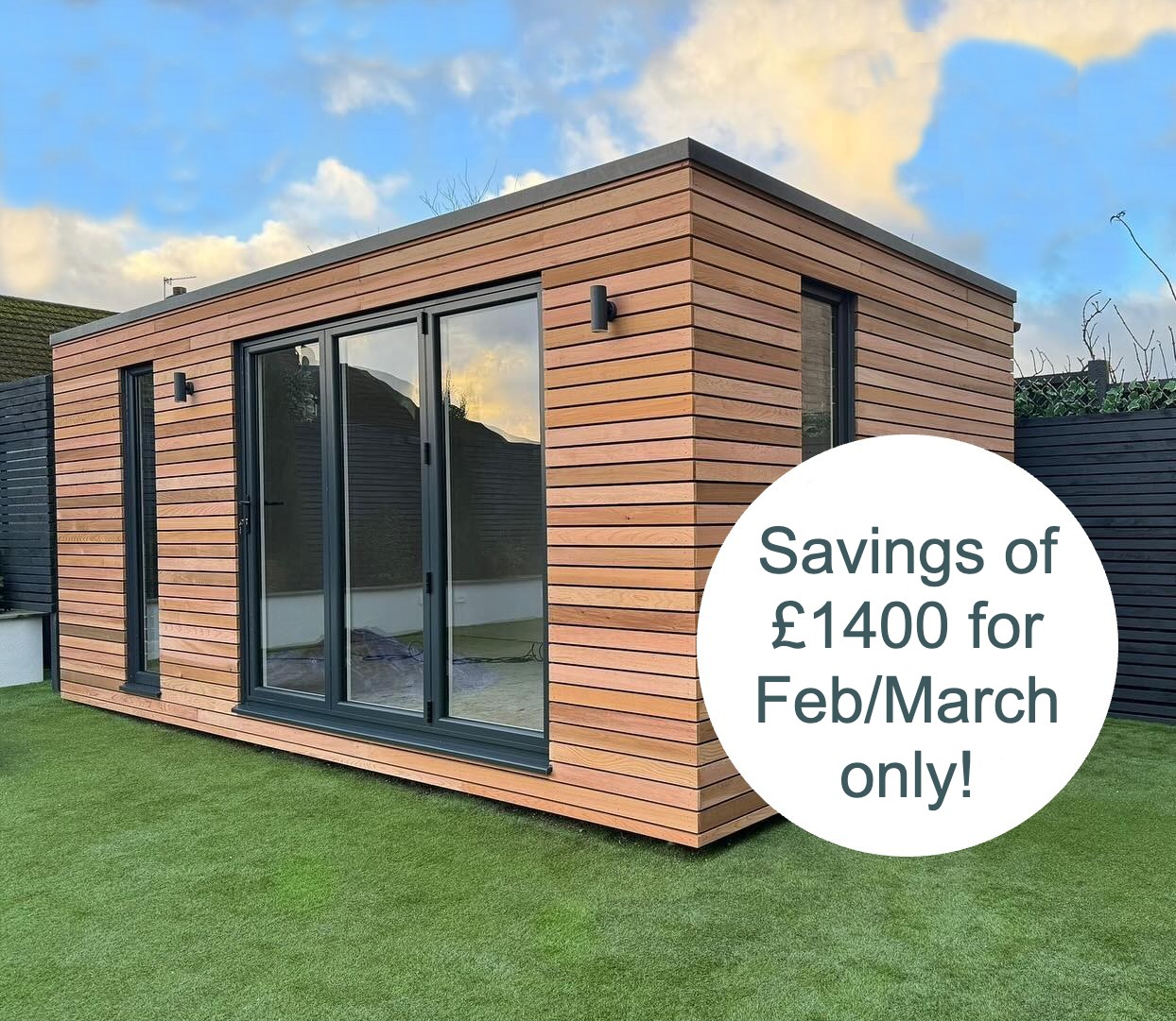 Explore our pricing options for our Contemporary Overhang Studios. All measurements in feet are approximate. Our sizes are rounded down for simplicity, please contact us if you require exact external/internal dimensions. The prices include delivery, installation, and VAT. Contact us for quotes for bespoke designs.